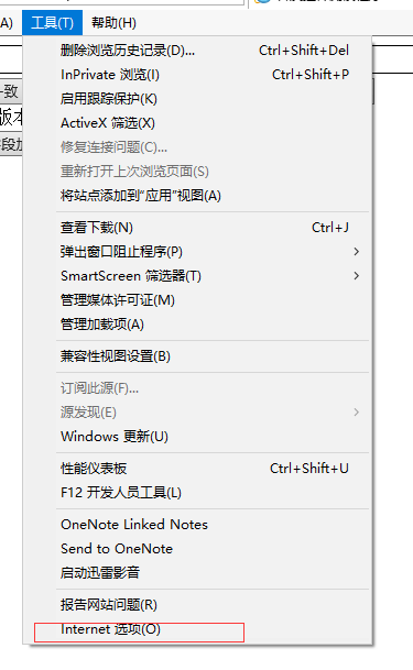 1.点击菜单栏的“工具”——“Internet 选项”,如下图: